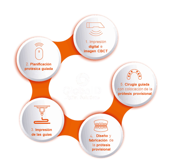 Impresión digital, planificación implantológica y diseño de la guía quirúrgica y de la prótesis provisional.
